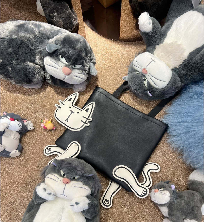 貓咪皮革托特包絕對吸睛! 雖然高調!但卻是有個性的那種 素素的穿搭~搭配貓咪皮革托特包就很有型! 且大容量!可以放13吋的筆電 包包是挺的!可以當公事包!也可以當旅遊提袋!非常多用途!